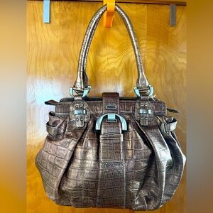 Two slip pockets, and one zipper pocket inside. Magnetic clasp.