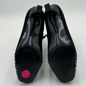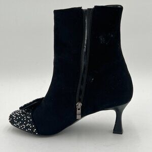 XYD Black Bling Rhinestones Buckle Mid Heel Ankle Bootie Square Toe Fashion Shoe