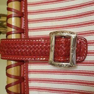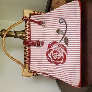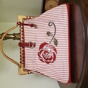 Brighton Bamboo Handle Doctor Bag Candy Stripe Red Rose Vintage Retro Style