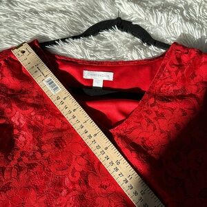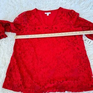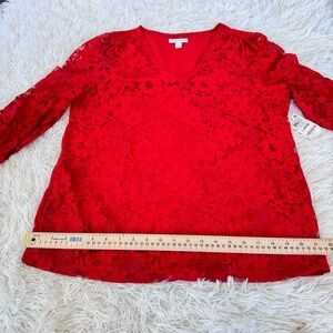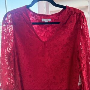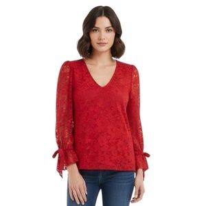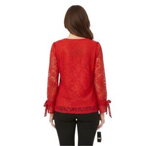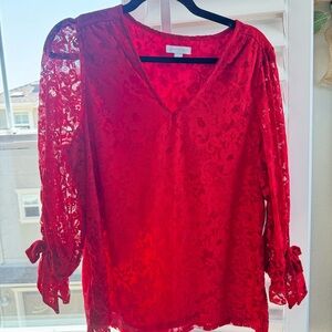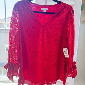 Charter Club Lace overlay blouse with 3/4 sleeves and cuff ties. Size Large