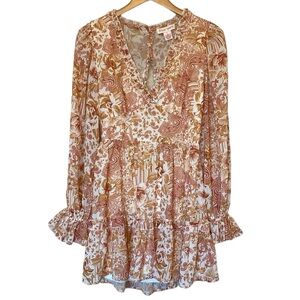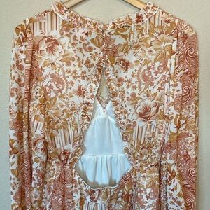 FLYING TOMATO WOMEN'S FLORAL PRINT LONG SLEEVE MINI DRESS L