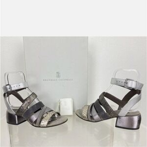 Authentic Brunello Cucinelli leather ankle wrap sandals with monili and snakeskin and lizard skin trim. Will come with original box. No duster. Excellent used condition aside from some minor scuffs on the inside of each heel. $1,195 + tax, was purchased at Saks Fifth Avenue in New York City. Run a bit bigger. I wear a size 6 and they fit me just fine. Listing as such.