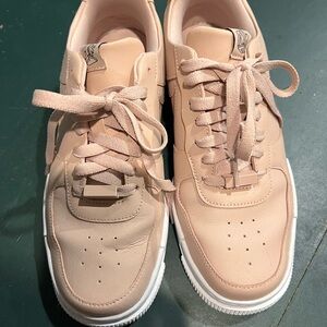 Nike Air Force 1 pixel women’s 9.5, worn a few times minimal wear. They appear more of a muted pink in person but are listed as beige. Still full price online for a new pair.