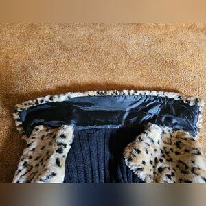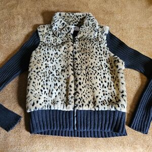 Tiara brand,size medium faux leopard print fur, and black knit jacket.