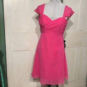 Size 4. Measurements (laid flat): bust pit to pit 17.5”; waist 13.5”; top of zipper to bottom of hem 23.5”.