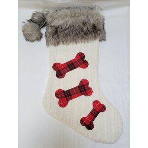 You will receive an Dog Christmas Stocking 20" White with Red Plaid Bones Holiday Stocking Faux Fur Band & Tassels In excellent used condition. Approximately 20" long measured lying flat from top to toe Please check out our other listings Thank you for shopping with us!