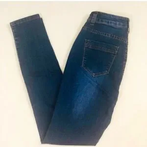 B & G Brand Skinny Lightly Distressed Blue Jeans. Five pocket, zip fly.