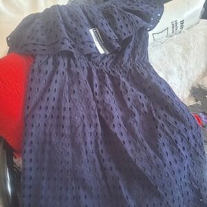 Chelsea & Theodore Navy One Shoulder Eyelet Dress Size L