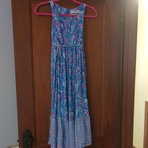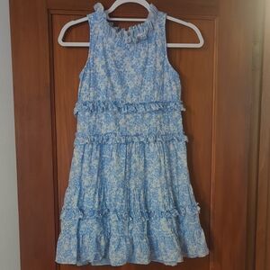 NWT denim dress with rhinestones. fully functional zipper down the front of dress and adjustable spaghetti straps
