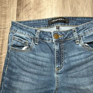 Item is preowned. Color is Blue. Material is Cotton (64%), Viscose (22%), Polyester (13%) and Spandex (1%). Size is a Women’s 27 (Measures 27).