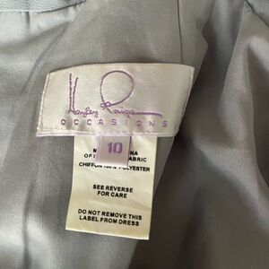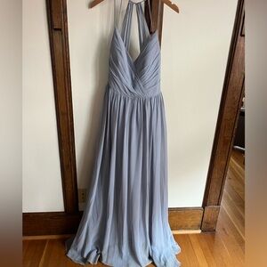 Light and float Hayley Paige Occasion Collection bridesmaids dress in Sky Blue. Size 10 with slight alterations to fit 34B bust. Minimal wear at the bottom of dress (no tears, will dry clean before shipping)
