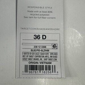 Shade And Shore Women's Size 36D Swim Bikini Top Lightly Lined Under Wire Blue New With Tags