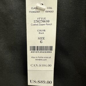NWT White House Black Market Coated Zipper Pencil Skirt Size 6