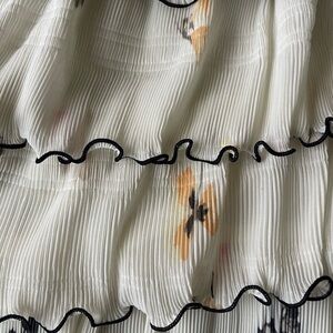 Crepe Mini Dress In White Size 38 /US 6 Crewneck, Long sleeves, Ruffled cuffs, back zip, Tiered ruffled skirt.