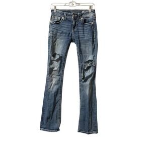 Good pre-owned condition. Distressed. See pictures. Quick shipping. Thanks for looking! Measurements *Actual waist 17 flat, Rise 11 1/2, Inseam 29