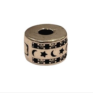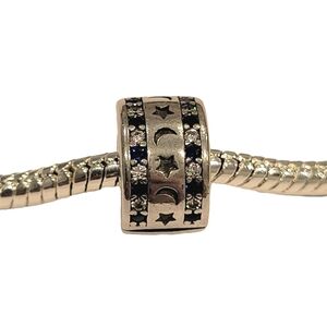 🎆Moon Stars Silver w/ Crystal & Blue Rhinestones Euro Bracelet Connector Charm