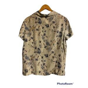 LIZGOLF Large Button Front Shirt Hawaii Palm trees Silk!