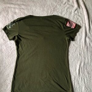 Grunt Style ladies V-Neck tee, sz S, Olive Green