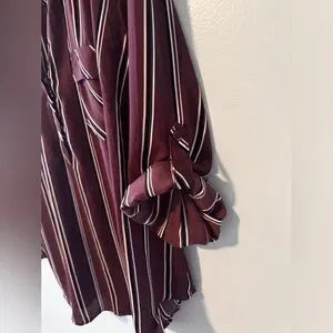Worn once when going in to the office. Comfortable and flattering. Burgundy black white and tan coloring