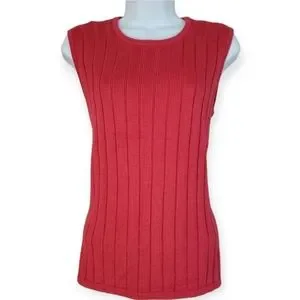 NWOT Talbots pink red sleeveless 100% silk cable knit sweater blouse Women Large