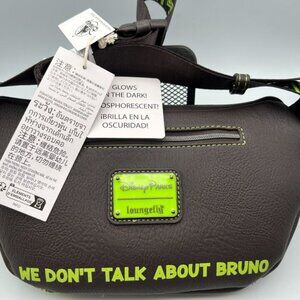 Get ready for a stylish and functional addition to your Disney collection with this Loungefly hip bag. Featuring the colorful and vibrant Encanto theme, this fanny pack is perfect for holding your essentials while you explore the parks or go about your day. The dark brown bag GLOW IN THE DARK, adding an extra touch of fun and magic to your outfit. Also, perfect for runners and cyclist since it GLOWS IN THE DARK. Made by Loungefly, this hip bag is sure to meet your expectations for quality and style. With the iconic Disney brand and the popular Encanto story, this bag is perfect for collectors and fans alike. Don't miss out on this opportunity to add a new piece to your collection and show off your love for all things Disney. This bag retailed for $80.00 in the Disney Parks.