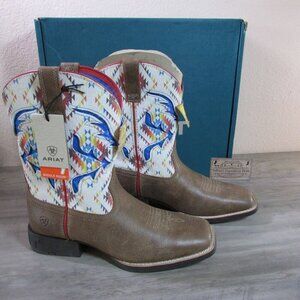 Ariat Men's Futurity Showman 13" Western Boots Navy Roughout/Bite the Dust Brown