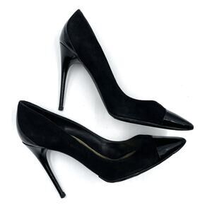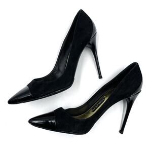Tom Ford Suede Patent Pumps Black Cap Toe Stiletto Pointed Slip On Sz 41 / 11 US