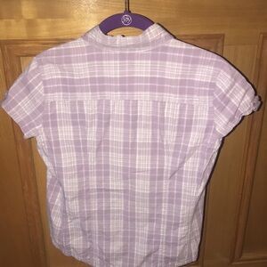2nd one is Lavender and White button up with 2 front pockets