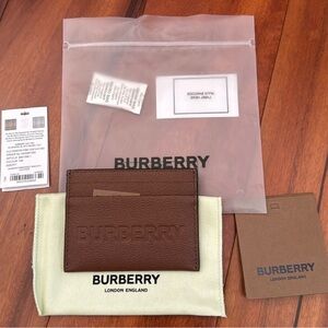NWT 🤎Burberry Sandon Logo Brown Leather Card Holder with Dust Bag Simply Luxury!