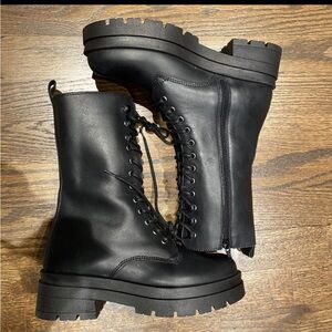 NIB Benvenuti black leather tall combat boots zip size 36 (us 6) made in Italy