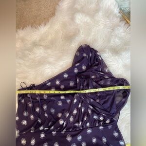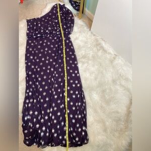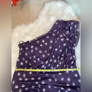 Excellent condition. Stretch fabric. One shoulder. Zipper/hook closure. Lined. 100% Polyester.