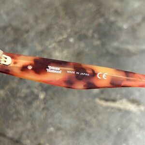 Anglomania, the diffusion brand that is now defunct from vivienne westwood . the last year was 2016 I think so seeing these new is very rare . metal anglomania text w/ a gold orb on each side . the arms are bright tortoise . the frames are frosted clear . all matte feeling . made in japan . text and serial numbers on the interior