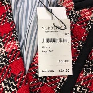 NWT $650 Veronica Beard Harriet Cutaway Red Checked Blazer Jacket