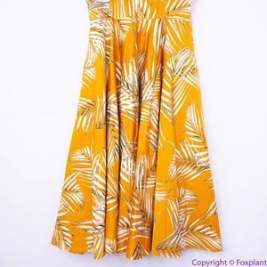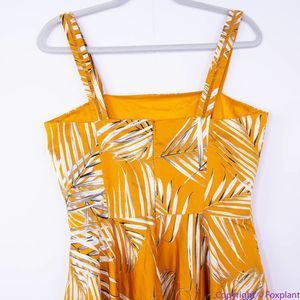 NEW White House Black Market gold Palm-Print Midi Dress with pockets, 8