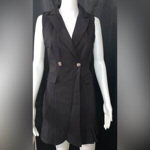 NWT Women’s Blazer Work Dress V Neck Ruffle A Line Slim Sleeveless Dress