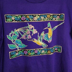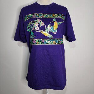 Vtg 90s Jerzees USA Air Waves Womens Large Royal Purple Hummingbird Gold T-shirt