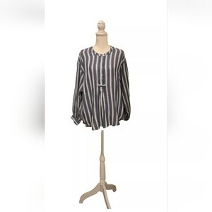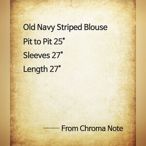 This Old Navy blouse is a classic addition to any wardrobe. The V-neckline and long sleeves make it suitable for any occasion, whether it's casual or dressy. The pullover closure and 1/2 button accents add a touch of elegance to the striped pattern.