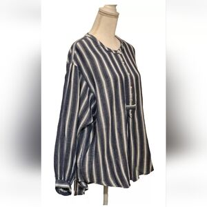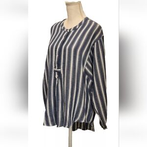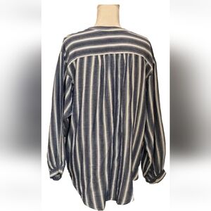 Old Navy Women's White Blue Stripe Old Money 1/2 Button 100% Cotton Top NWT XL