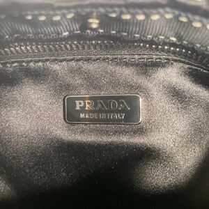 #Prada #Luxuary The bag is black silk with leather small stap and leather flower. Very elegant. Pristine