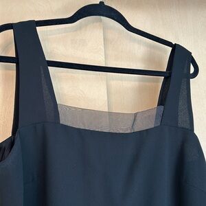 Tank top- wide strap tank, sheer neckline, fully lined with sheer overlay, split hem. 21.5” pit to pit, 25” shoulder to hem