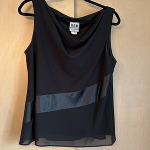 Sleeveless top - cowl neck, fully lined with sheer overlay, diagonal satin stripe. 22” pit to pit, 22” center back to hem