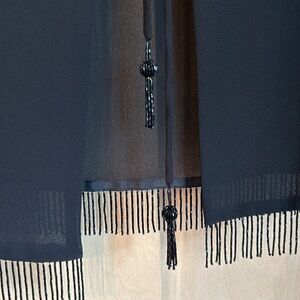 Jacket - long sleeve, sheer jacket, shoulder pads, tie closure with beautiful beading. 25” pit to pit, 25.5” center back neck to hem with 1” beaded trim