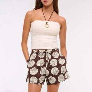 Chic, high-waisted shorts. Pleat detail at front. Pattern throughout. Pockets. Center front zip closure. Slimming fit.