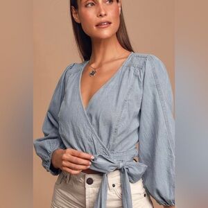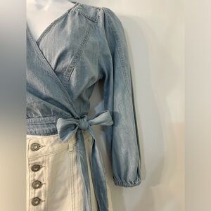 NWT Free People Sophie Light Wash Denim Wrap Top