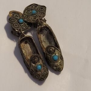 Vintage silver tone Persian Slipper clip on Earrings PRICE REDUCED!!