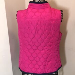 crown & ivy Fuschia Quilted Vest Trimmed in Navy Blue