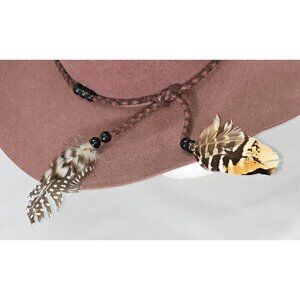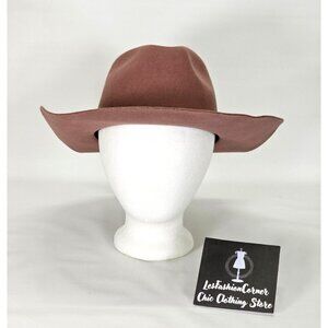 NWOT Brooklyn Hat Co.Deep Dusty Rose Felt Boho Fedora Feathers Leather Sz M 1622