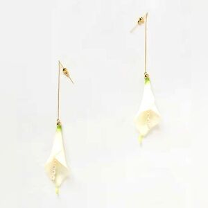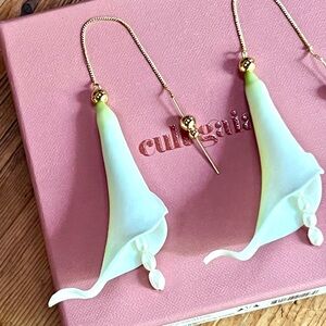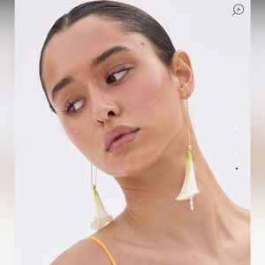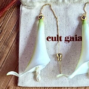 The jaw-dropping, jealousy inducing Calla Earring by Cult Gaia is sure to become a summer accessory staple & favorite in your wardrobe. Her slim chain detail & drop thread-style features a shoulder-skimming, sultry design. Crafted to turn heads, the gorgeous faux orchid showcases a partially hidden freshwater pearl centerpiece that shimmers & catches the light as you move about the room. Elegant, lightweight & comfortable for day-to-evening wear, guaranteed to bring compliments. Approximately 4 1/4β-5 1/4β long depending on how you choose to thread it, 1 3/4β wide at the bottom. Made with genuine freshwater cultured pearls, 100% brass & 100% polyurethane. NWT π·