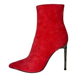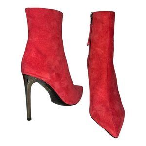 $665 rag & bone Red Teaberry Suede Wes Bootie Heel size 37/7 Mirrored Stilettos