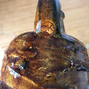 Vintage CK Art Pottery Ceramic Brown Moonshine Whiskey Jug 5 2/3" H